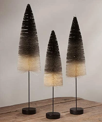 This set of 3 black and white ombre bottle brush trees by Bethany Lowe is a classy addition to your Halloween mantle. Dimensions: 11.75″ X 4″ X 4″, 10.75″ X 3.75″ X 3.75″, 9.625″ X 3″ X 3″, and 9.25″ X 3.125″ X 3.125″.