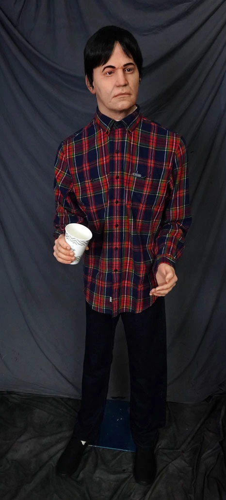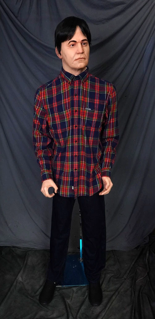 Poseable foam rubber body with lifecast male Danny head and wig. Includes removable factory standard stand. Pale skin tone with hold hands. This figure can sit or stand.