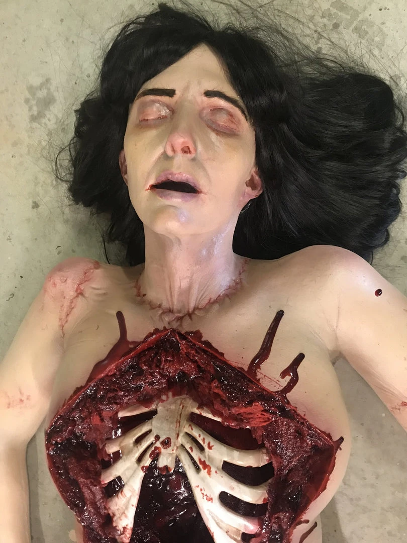 Gory female autopsy body at an affordable price. If you need a more realistic model with removable organs, see our Complete Female Autopsy Body.