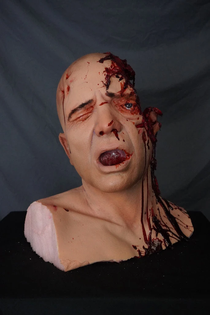 Gory lifecast head prop and been clawed up and chewed on by brain eating zombies!