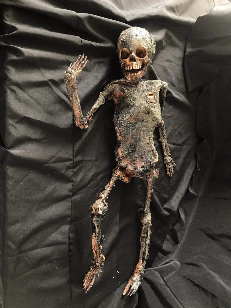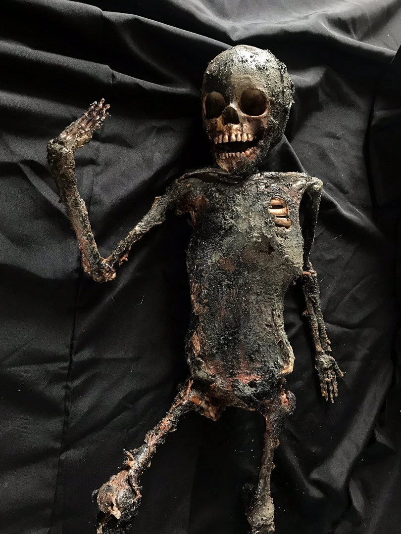 Realistic toddler body burnt down to the skeleton. Poseable. Roughly 38″ tall. Great size for a 2 to 5 year old.