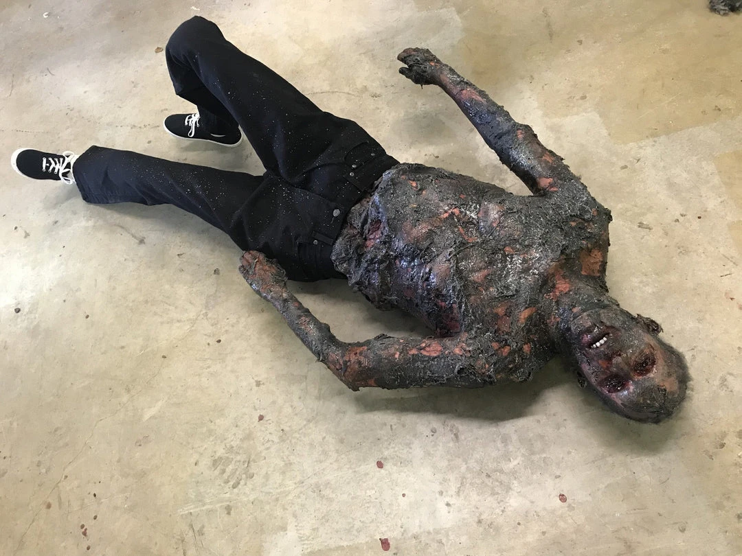 Our joaquin body burnt to a crisp with posable legs and armature in the arms for poseable joint at the elbow.