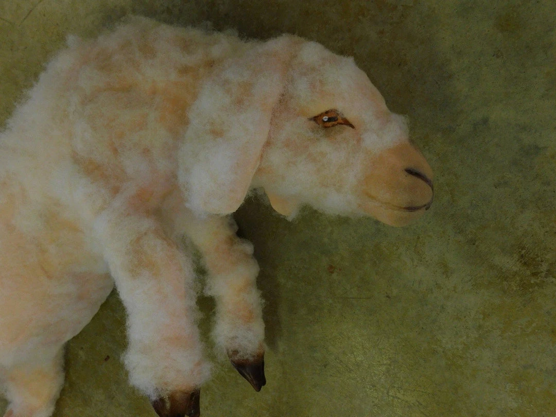 Full size realistic yearling lamb covered in wool