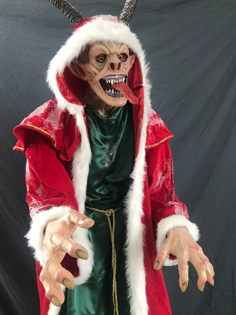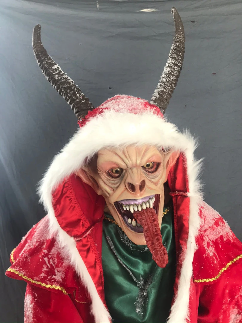 This Krampus, or Christmas Devil is perfect for Krampusnacht or other scary Christmas scenes. Dimensions: 68″ x 29″ x 22″. Width at widest part of horns. Weight: Approximately 30 lbs.