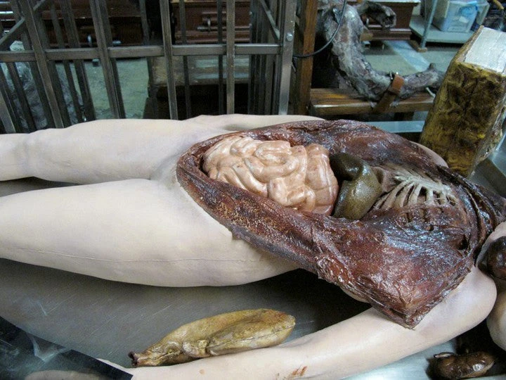 This amazing lifesize, custom made and custom painted female body opens up to reveal a removable, interlocking organ set which includes lungs, heart, stomach, liver, kidneys and intestines. Fantastic prop autopsy corpse for medical and morgue scenes, and realistic enough for education and training in casualty simulation, anatomical lessons and film / TV.