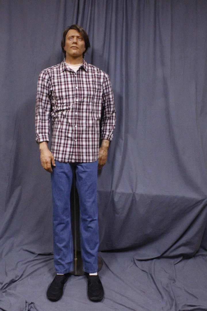 Value figure includes a realistic lifecast head, lifecast hands, poseable foam rubber body, generic clothing and a lightweight removeable stand. This figure can sit and stand.