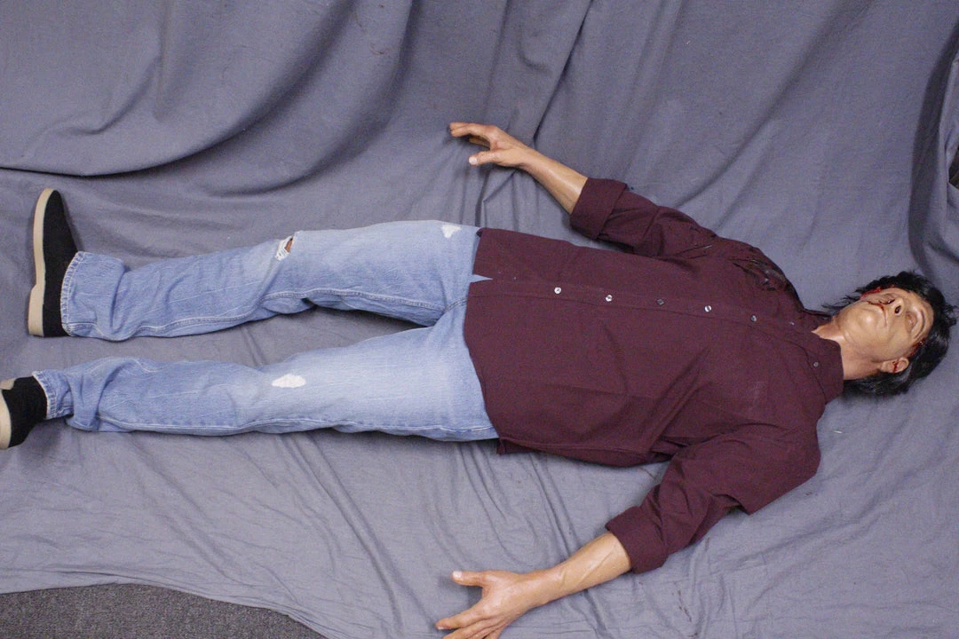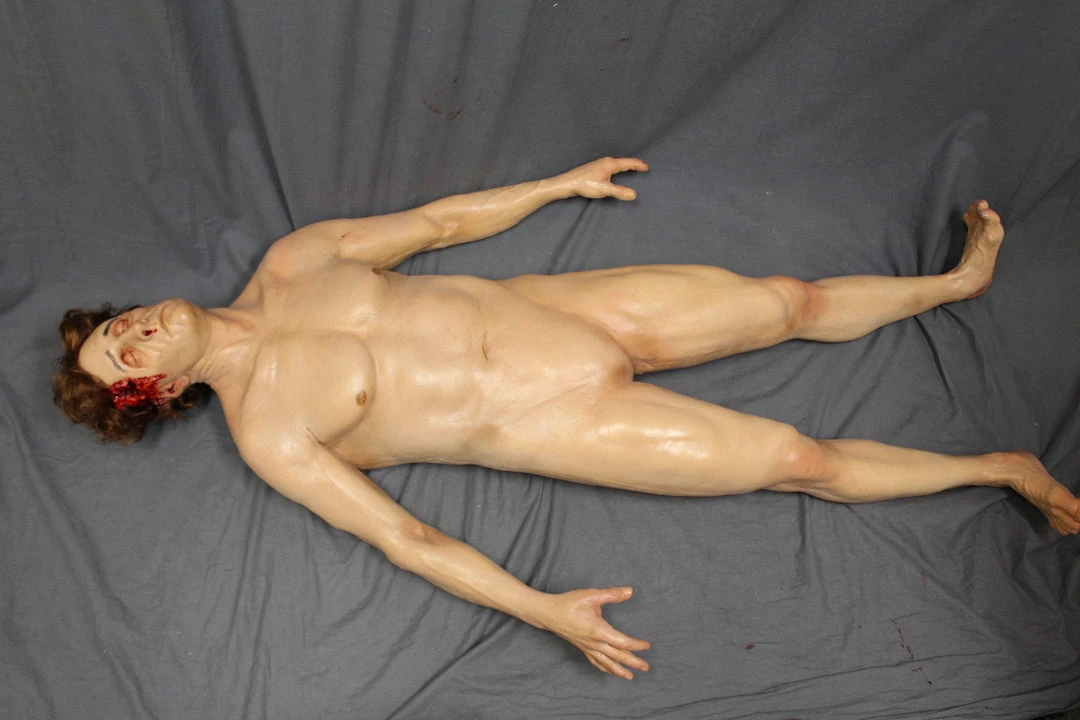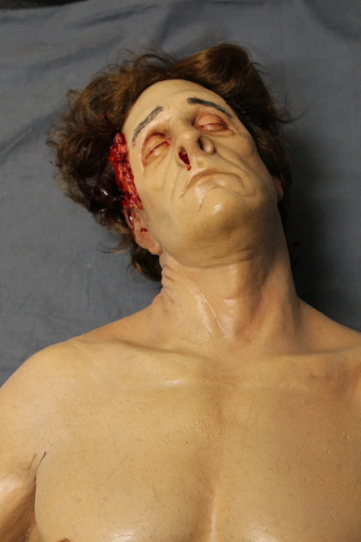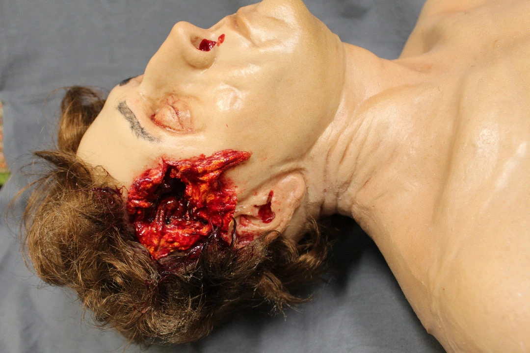 Lifecast Gunshot Gary male body features a gunshot entry wound on one side and a large exit wound on the other side of his head, closed eyes and a muscular build. 5’9″ tall. Cast in high-strength, high-detail urethane rubber skin with smooth seams. Great for training exercises and other projects that need the strength to withstand regular rough treatment.