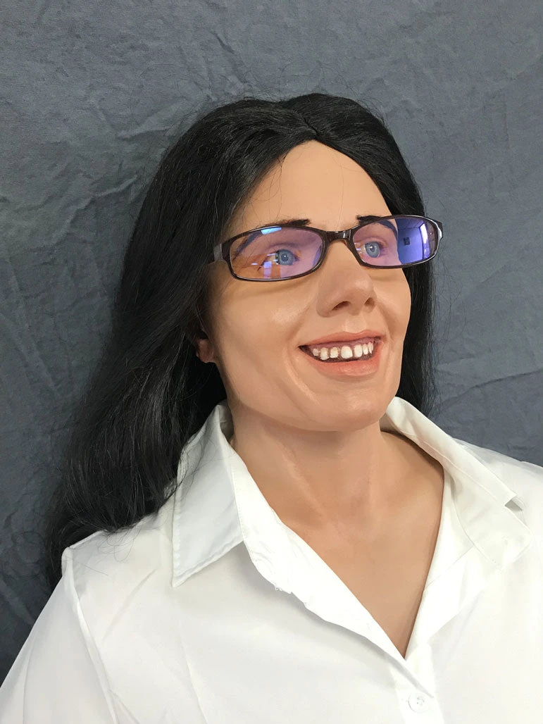 Realistic Kristina figure made with lifecast head and hands in high strength and detail dura-rubber on a poseable foam body with a removable stand. Includes clothing, wig and glasses.