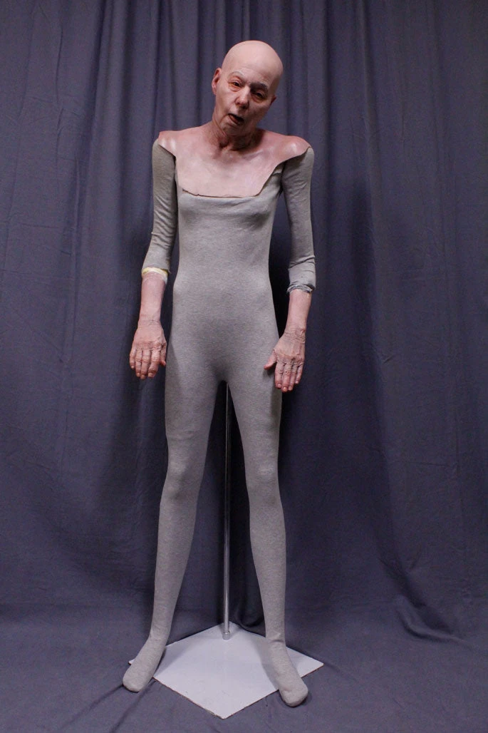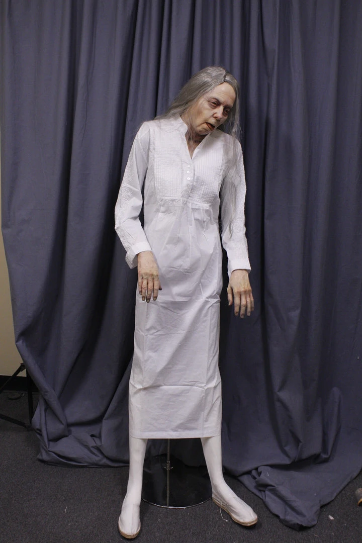 Super realistic Edith figure made with lifecast head and arms in high strength and detail dura-rubber on a poseable foam body with a removable stand. Includes clothing and wig. 5’3″ standing height.