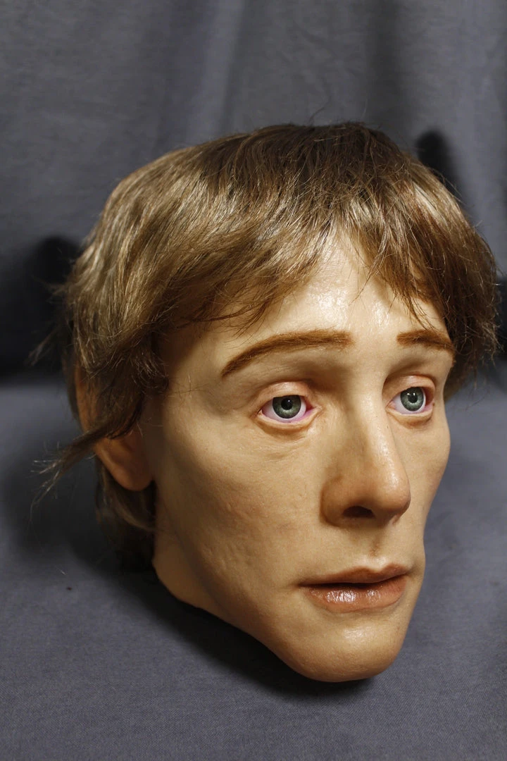 Life size, life cast middle aged to elderly male head with open eyes. Cast in high-strength, high-detail urethane rubber skin with sanded seams.