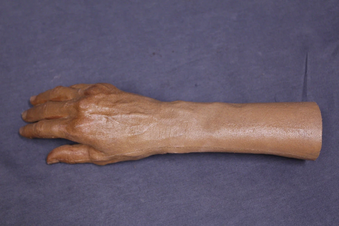 The Leslie prop hand is a lifecast female hand with spread fingers. Cast to the wrist.