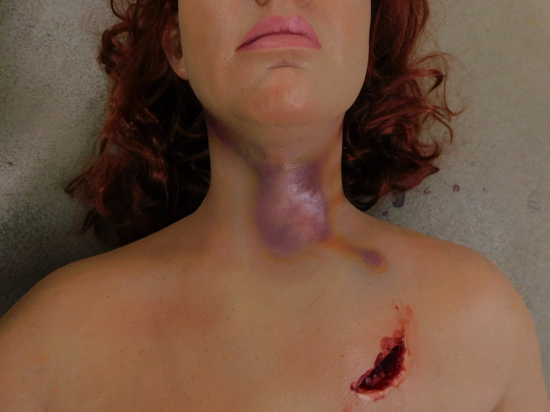 Severe Trauma Jessica has 3 realistic wounds on her body. She features: