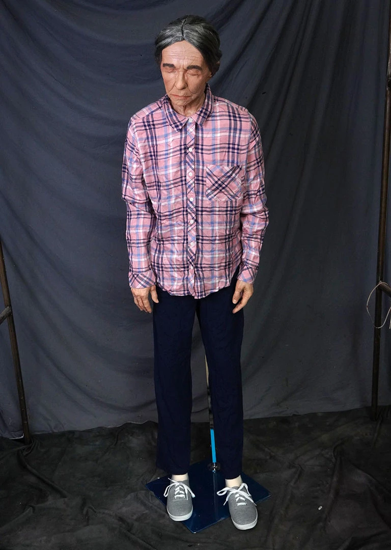 Poseable foam rubber body with lifecast female Agnes head with wig. Includes factory standard stand.