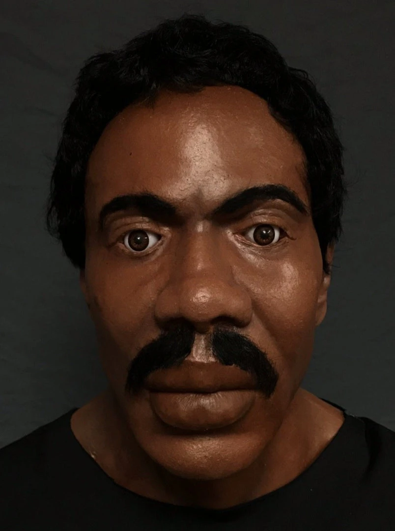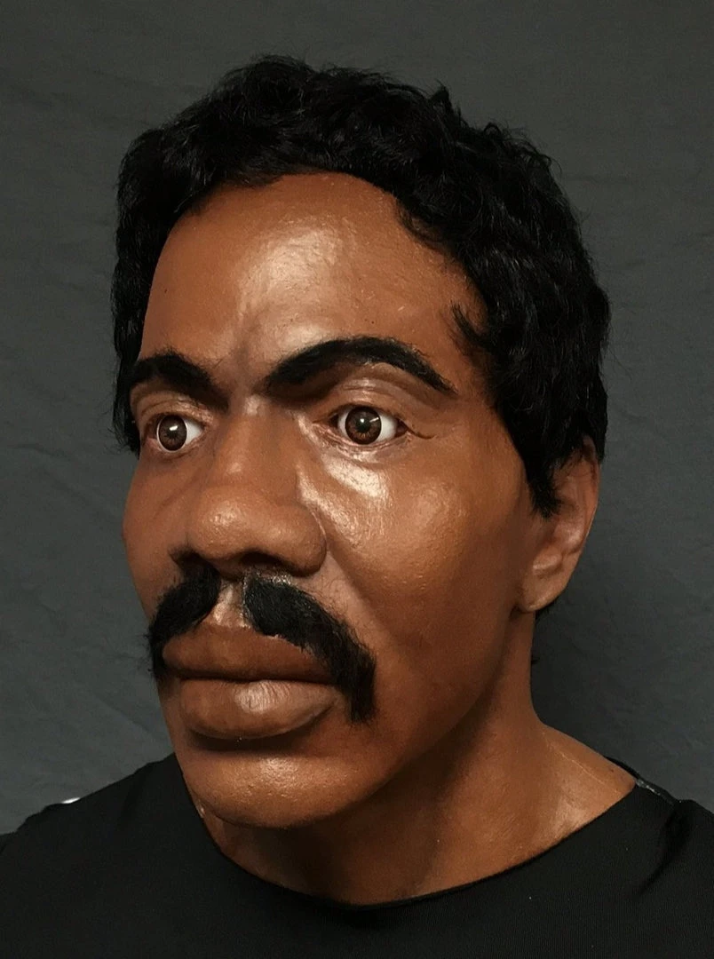Full size, high detail Richard head in dark skintone with hair, eyebrows and mustache.