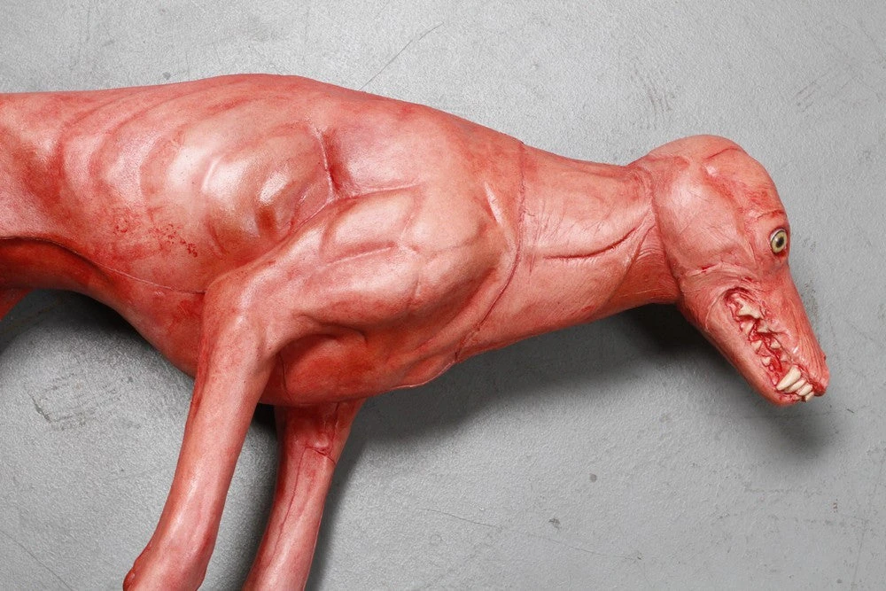 Foam rubber skinned coyote prop with bloody finish.