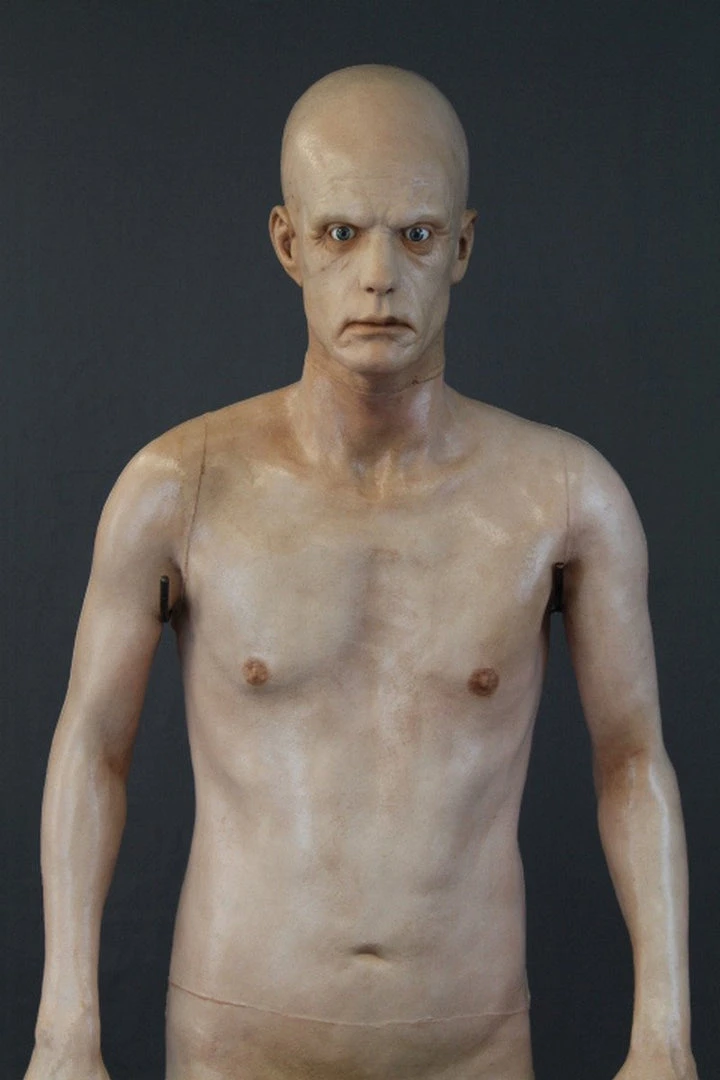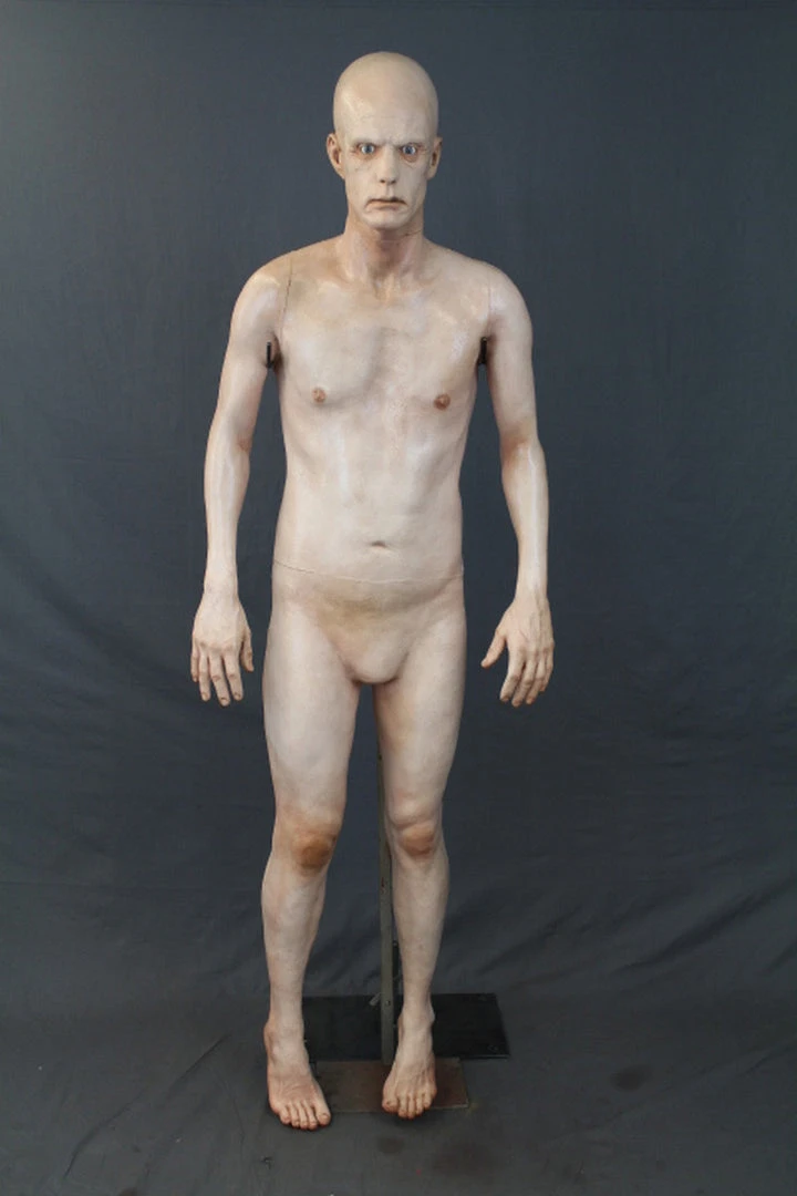 Deluxe frank is a lifecast body over 6 feet tall. Body features poseable arms and neck. Open and intense eyes. Male, age 40-70.