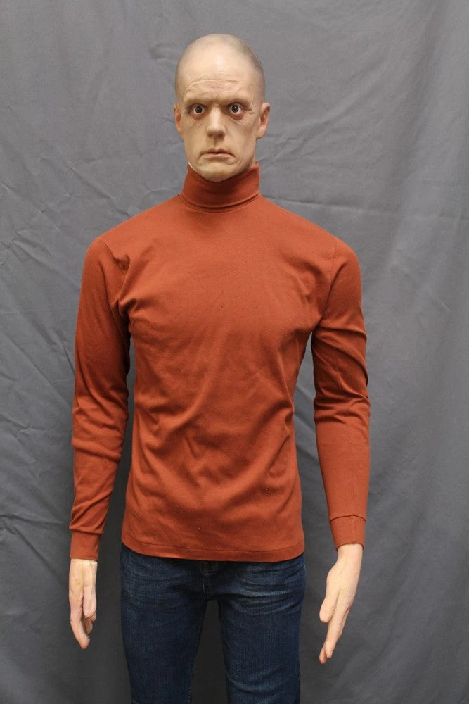 Poseable life size figure with Frank head and heads. This head has a shorter neck, so the figure needs to be dressed in a high neck shirt.