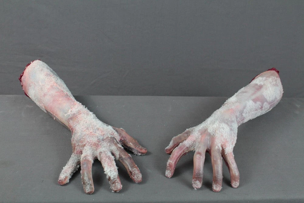 Elbow length arms lifecast from a large male. Frostbitten fingers and ice covered skin.