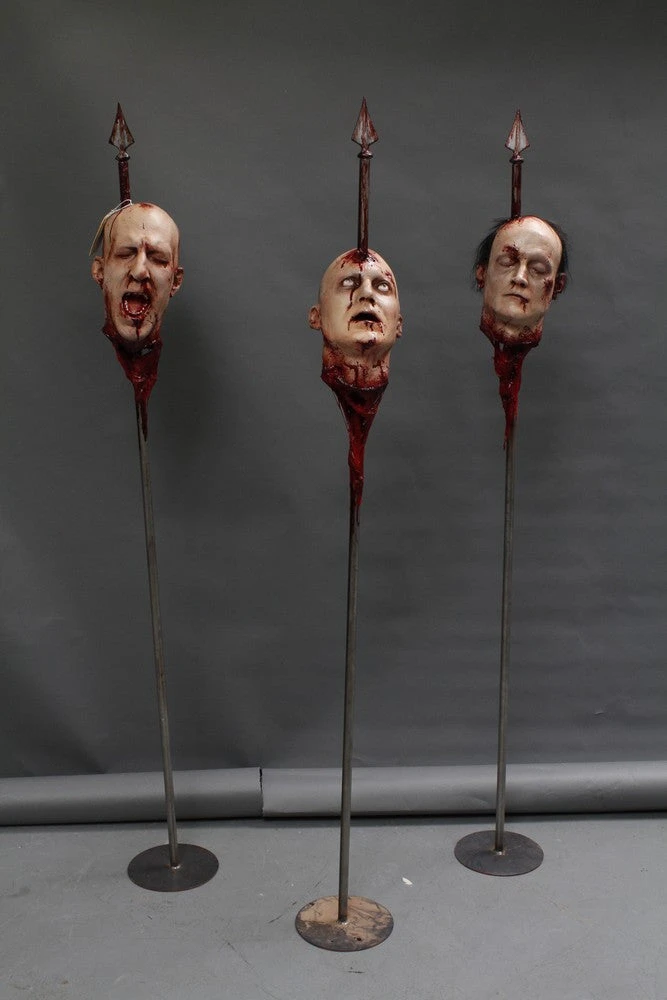 Dapper Cadaver Workshop Gory Body Parts Three Assorted Heads On Spikes