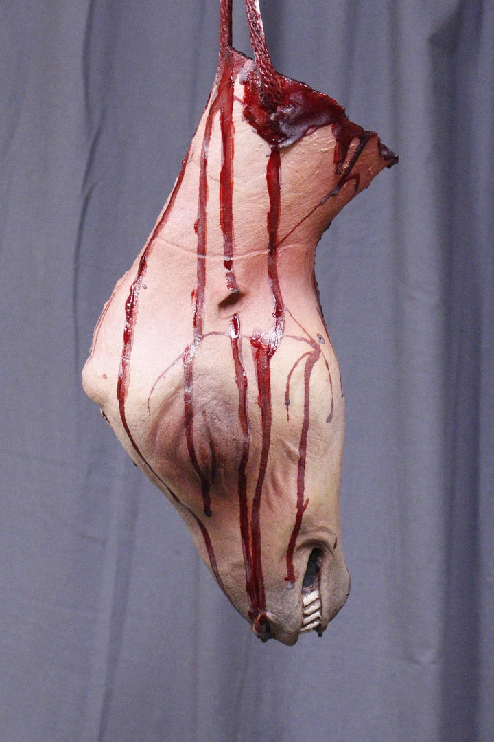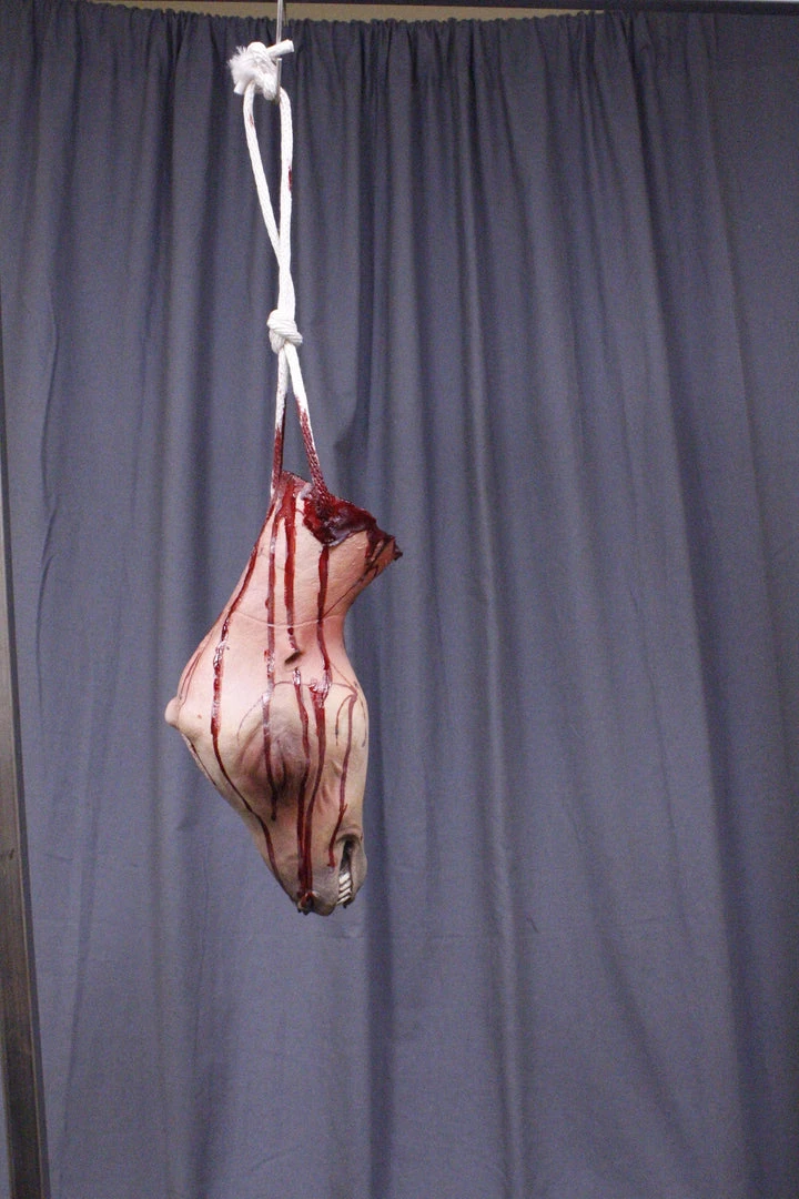 Dapper Cadaver Workshop Hanging Skinned Goat Head Gory Butcher Shop