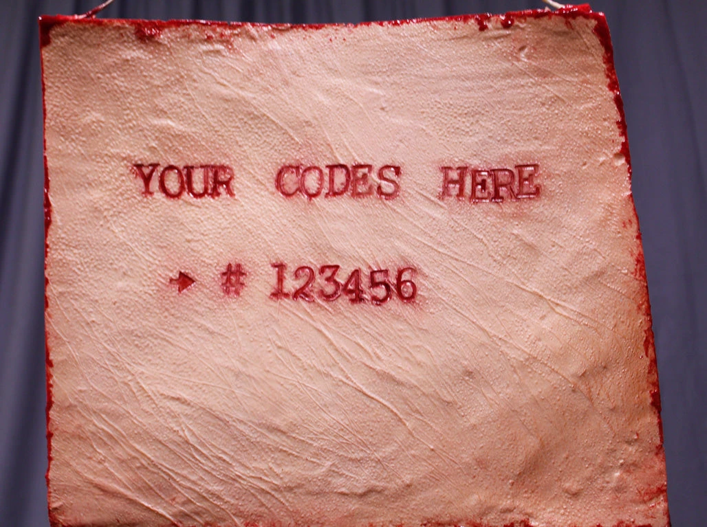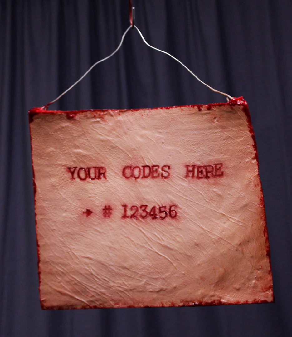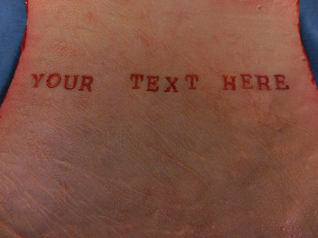 This sheet of “human skin” is made from durable urethane rubber. Hanging armature optional. Up to 20 letters and numbers are included in the price. Extra letters and numbers are $2 each. Put your message and any placement requests in your order notes.