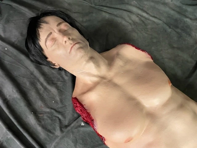 Muscular lifecast Jack torso with head and gory stumps where the arms and legs would be.