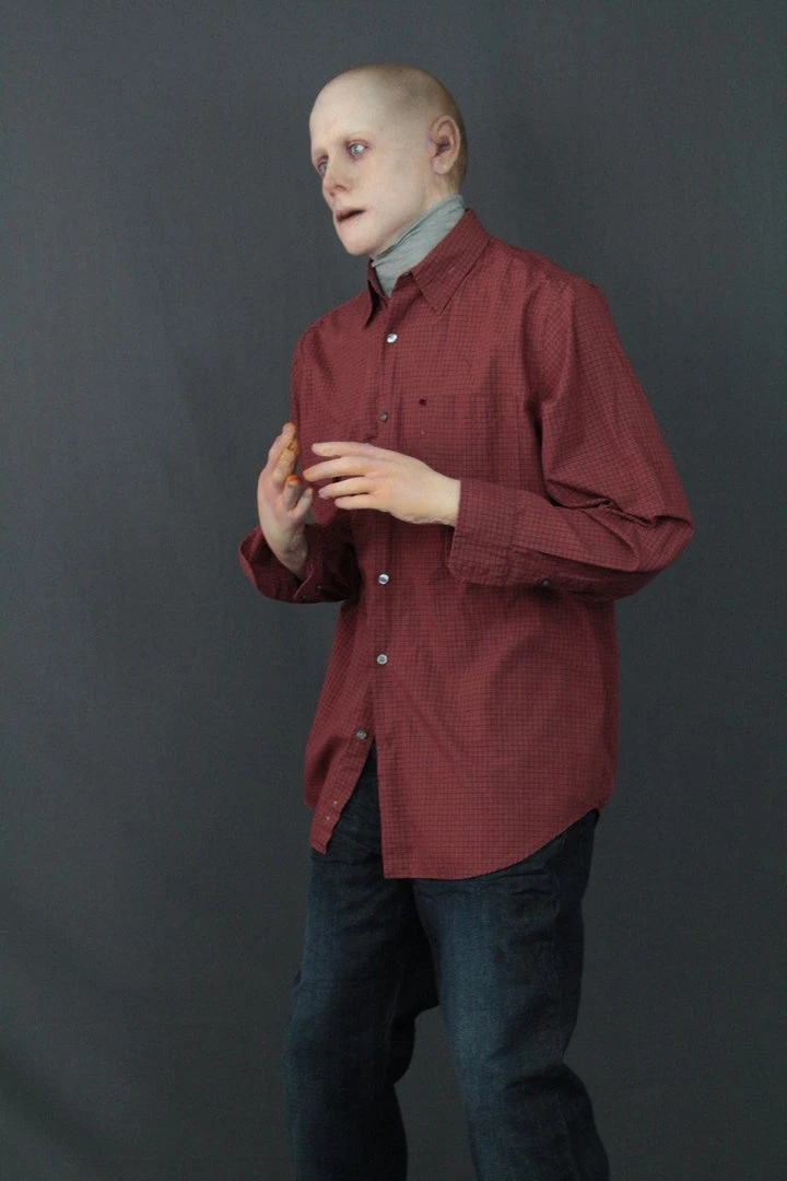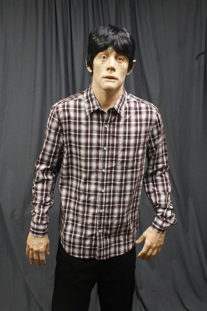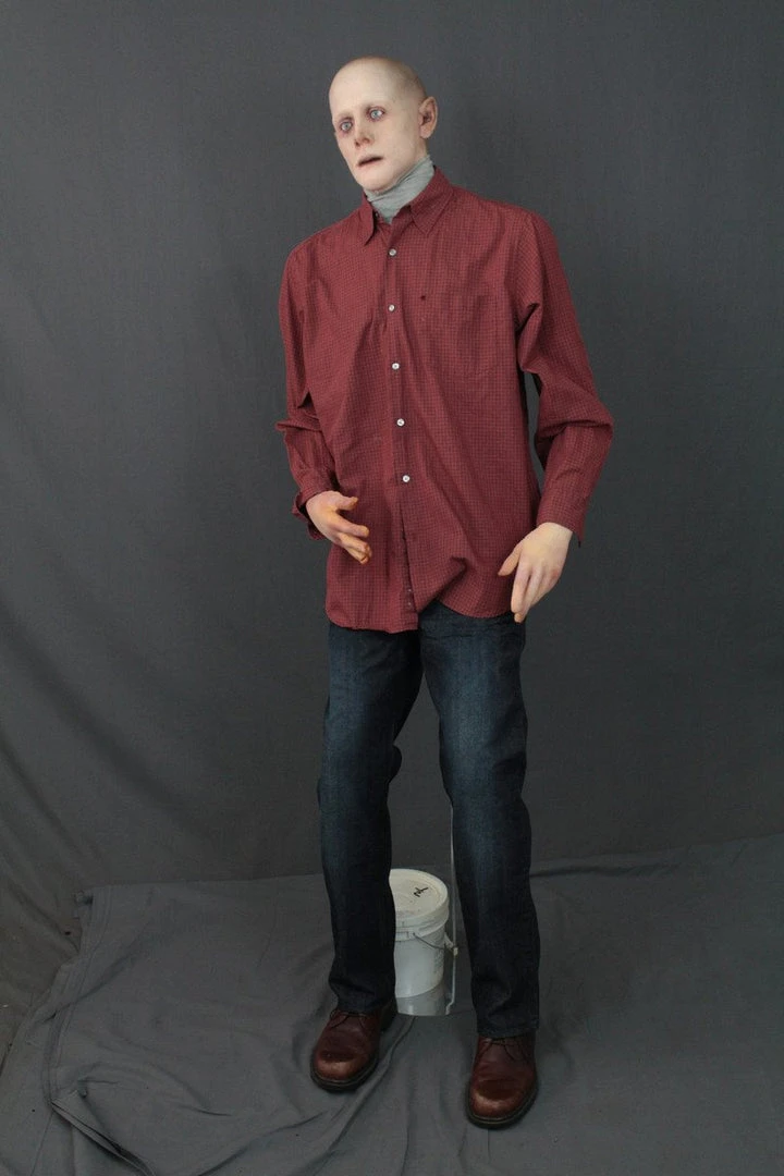Value figure includes a realistic lifecast head, lifecast hands, poseable foam rubber body, generic clothing and a lightweight removeable stand. This figure can sit and stand.