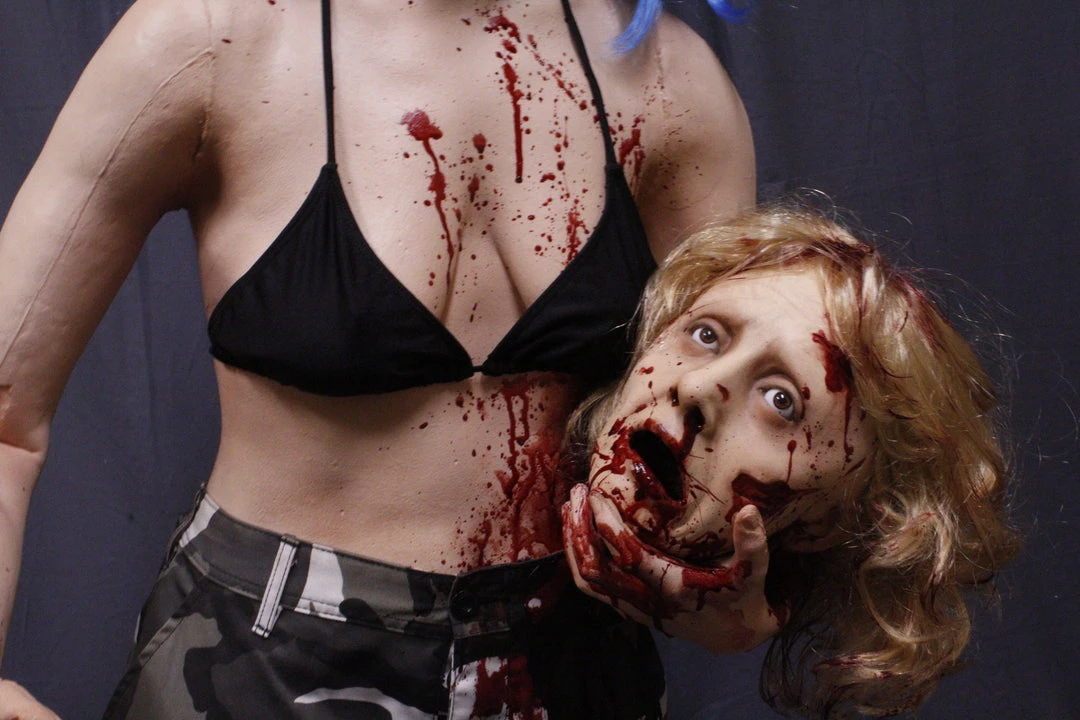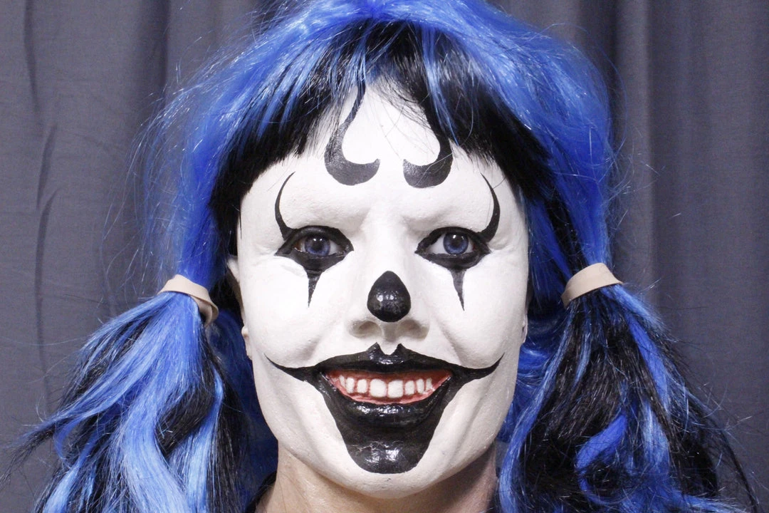 You don’t want to mess with this freaky blue haired lady clown. She has a knife and a severed head that proves she can use it. Full lifecast body on steel footplates. Fun scary clown haunted house prop.