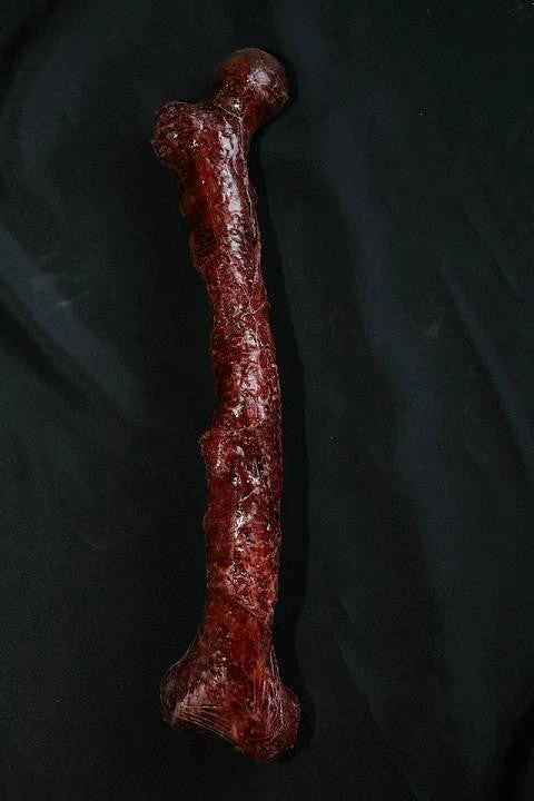 Tired of replica femurs stripped of their delicious replica meat? Then this piece is for you. One life sized human femur covered in lifelike human meat. Perfect for man eating animals and man eating cannibals.