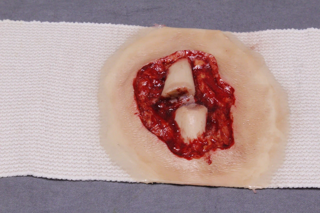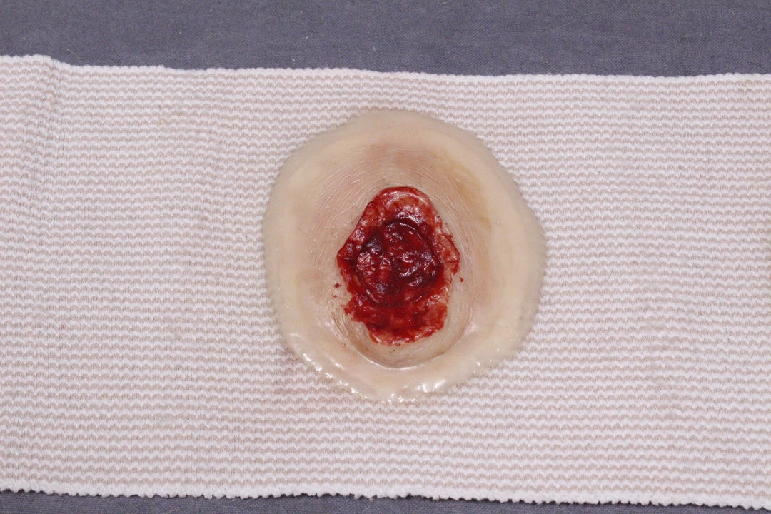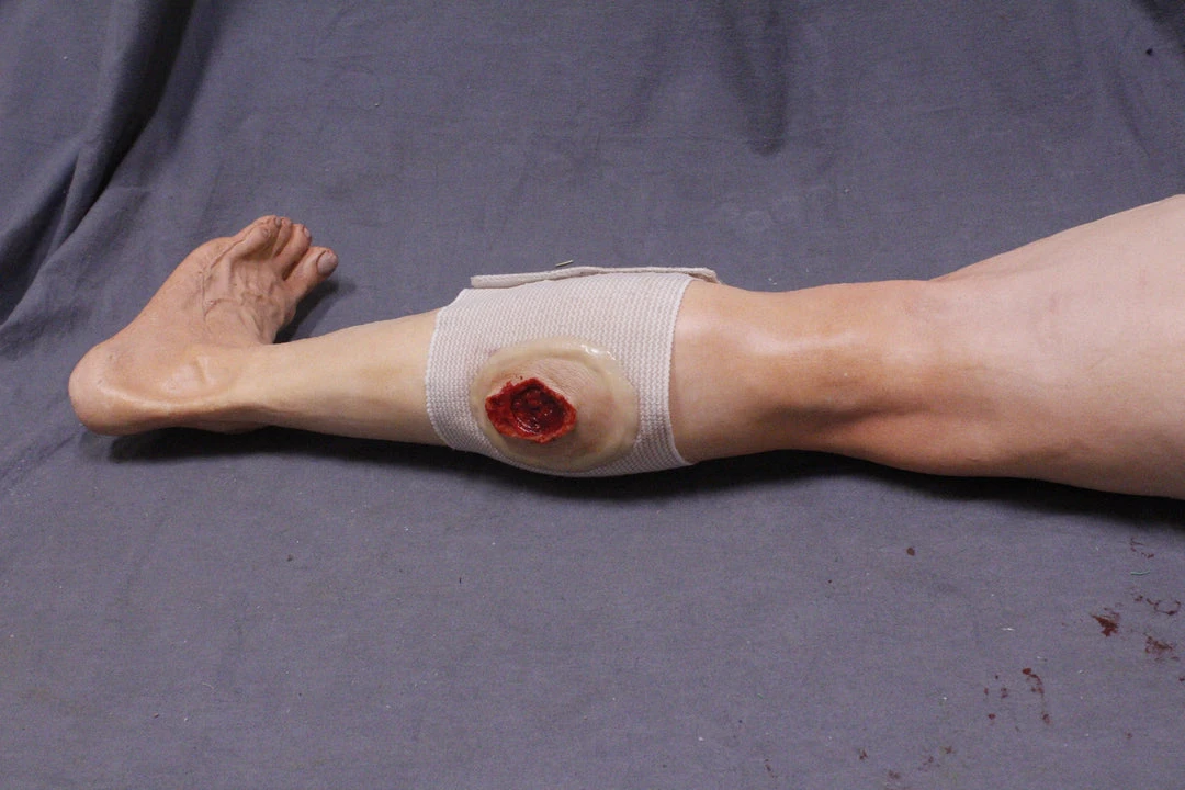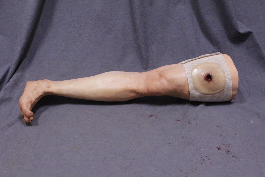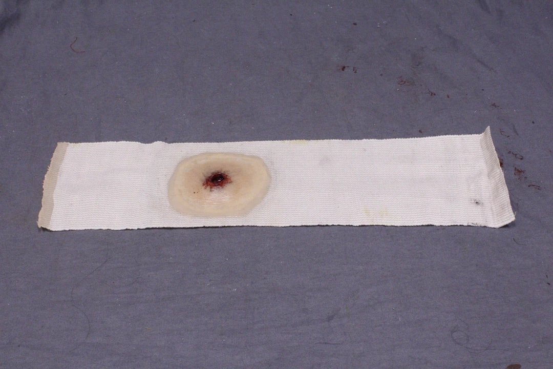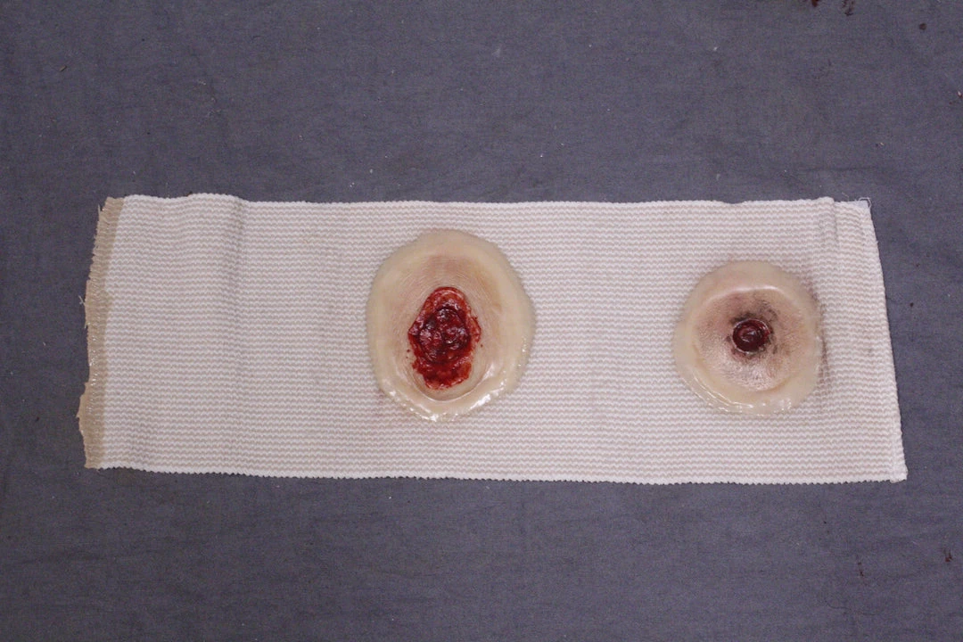 Dura rubber moulage kit on elastic bands for strapping wounds to fake arms and legs. Great for training. Not a makeup product. It contains: