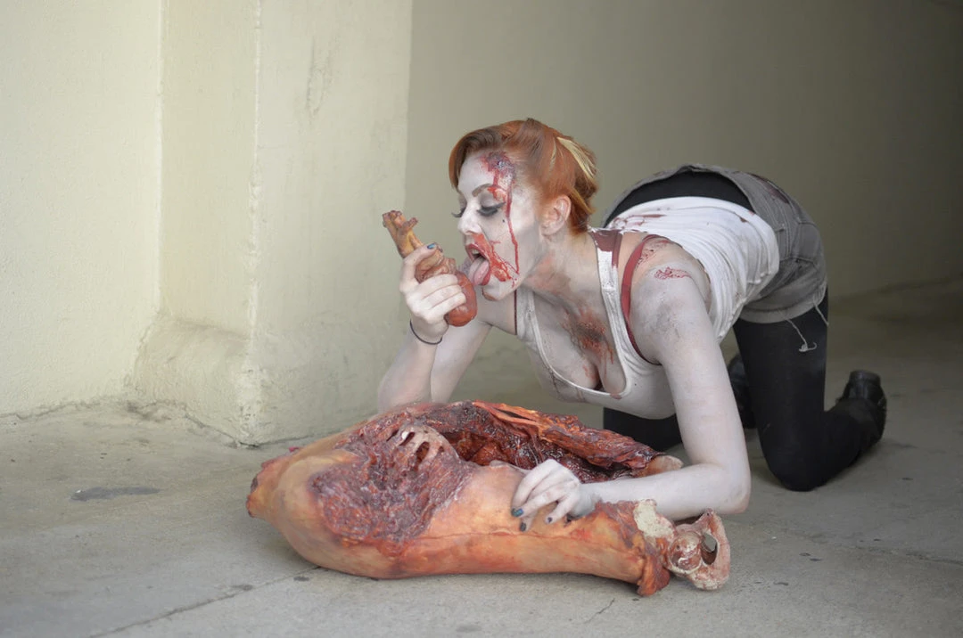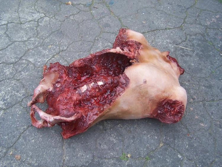 An extremely gory piece, this deluxe gore chest has been ripped open to reveal spine, ribs and hip bones.