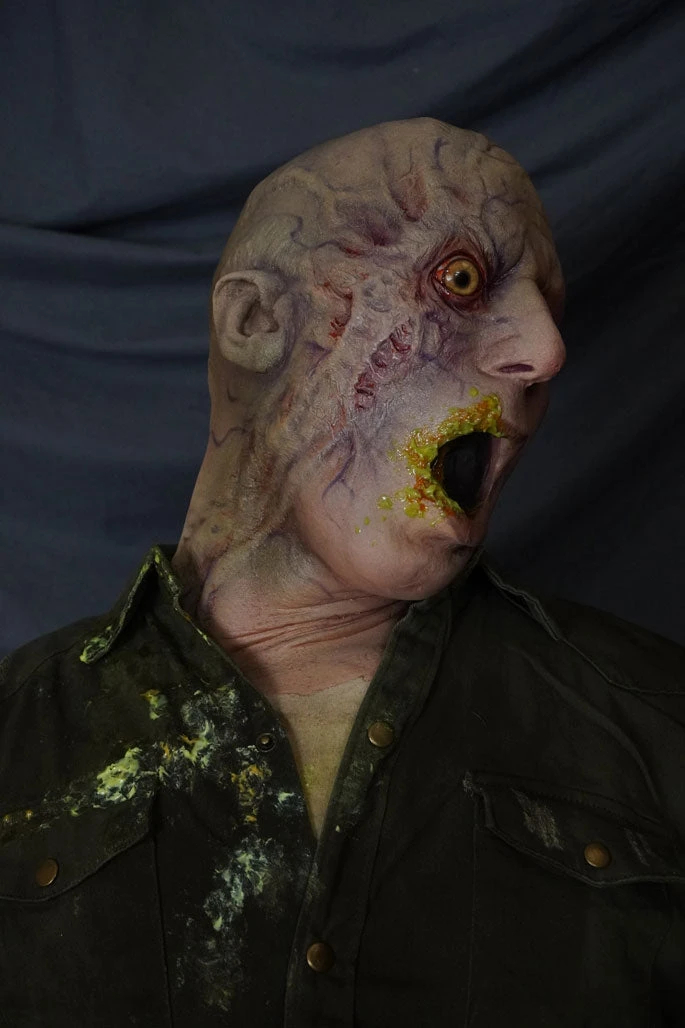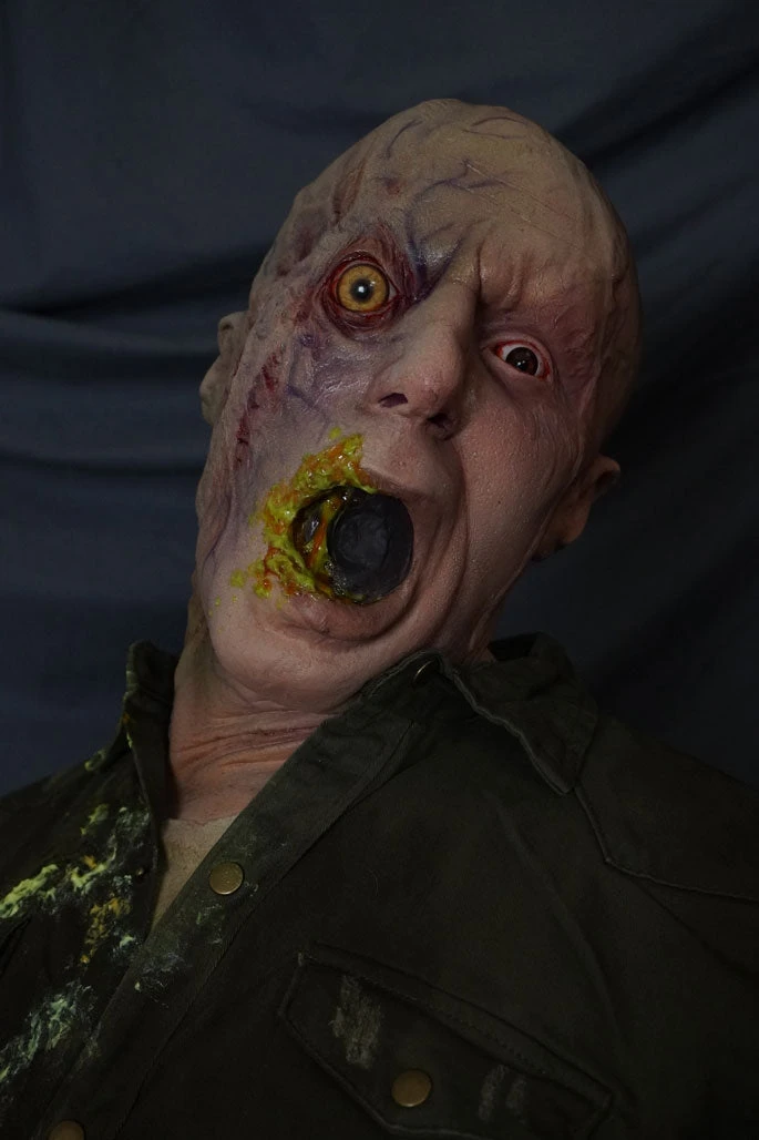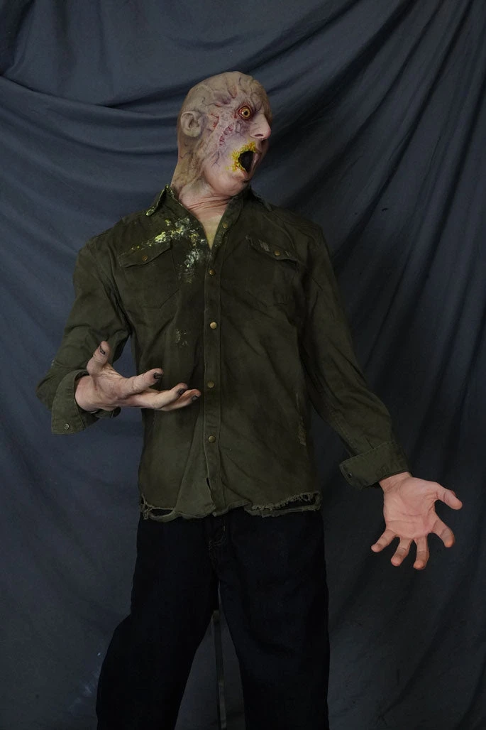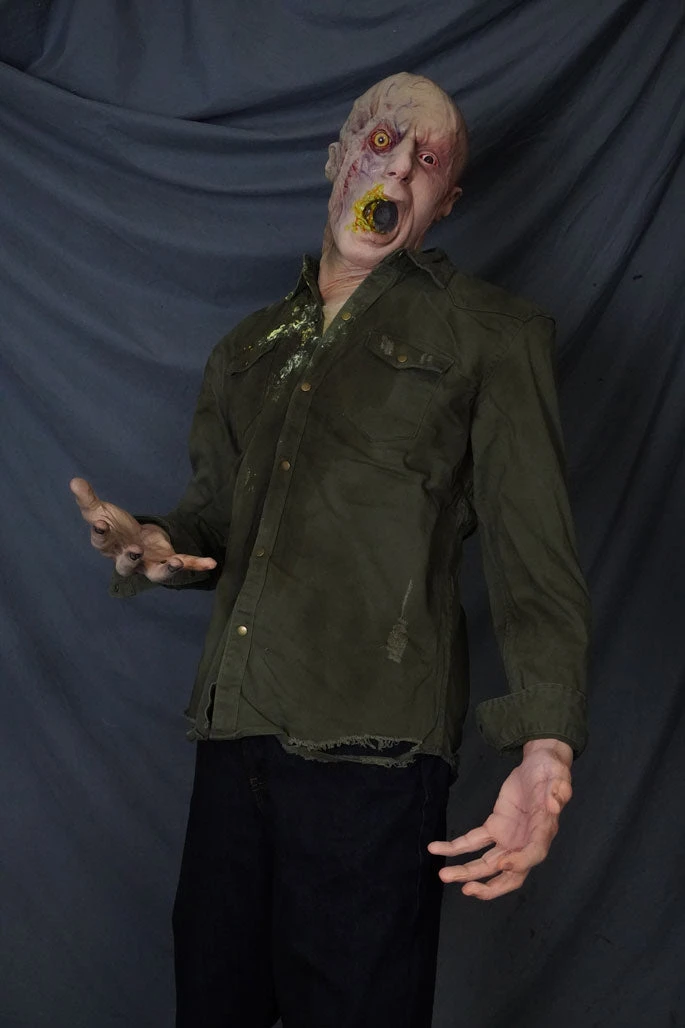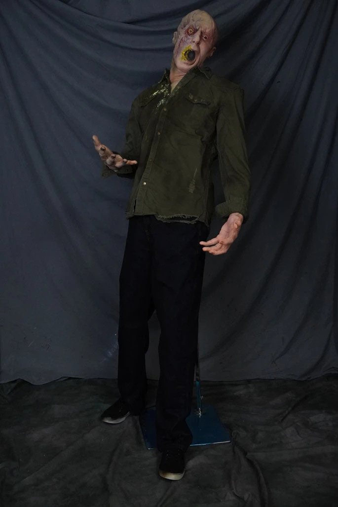 Lifesize standing creepy Floyd figure looking like he’s being taken over by an alien or demonic force. Perfect for your spooky mad science lab haunted house or outbreak escape room.