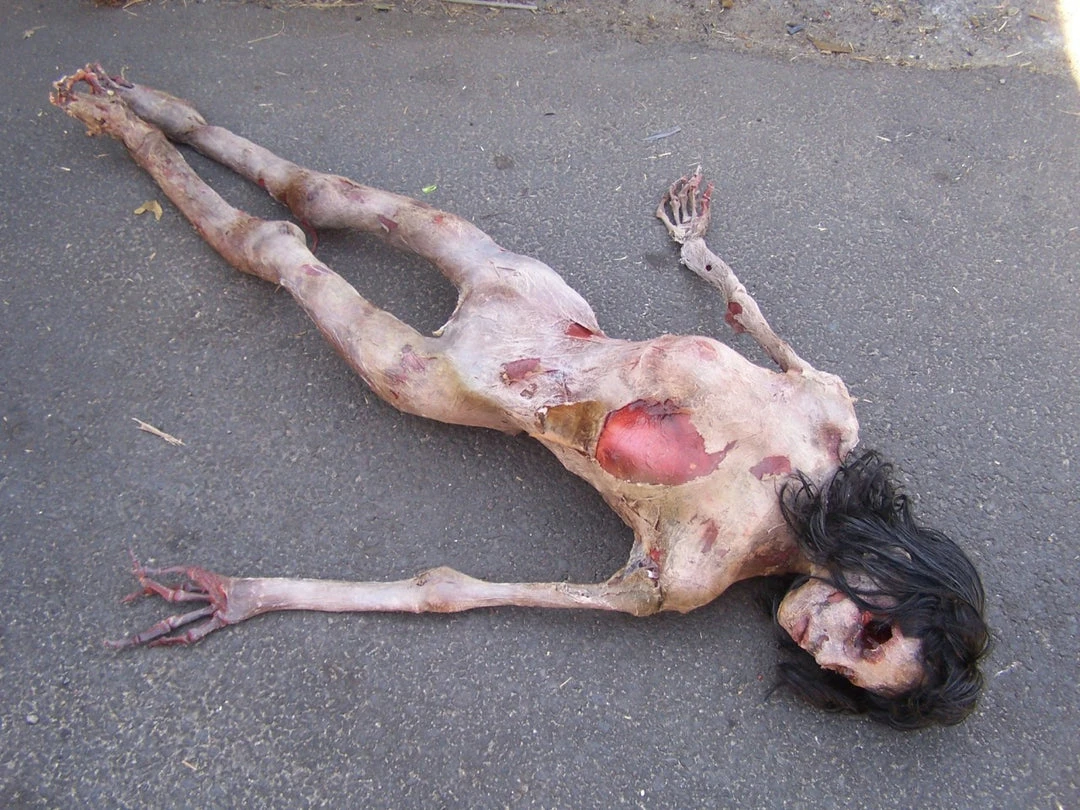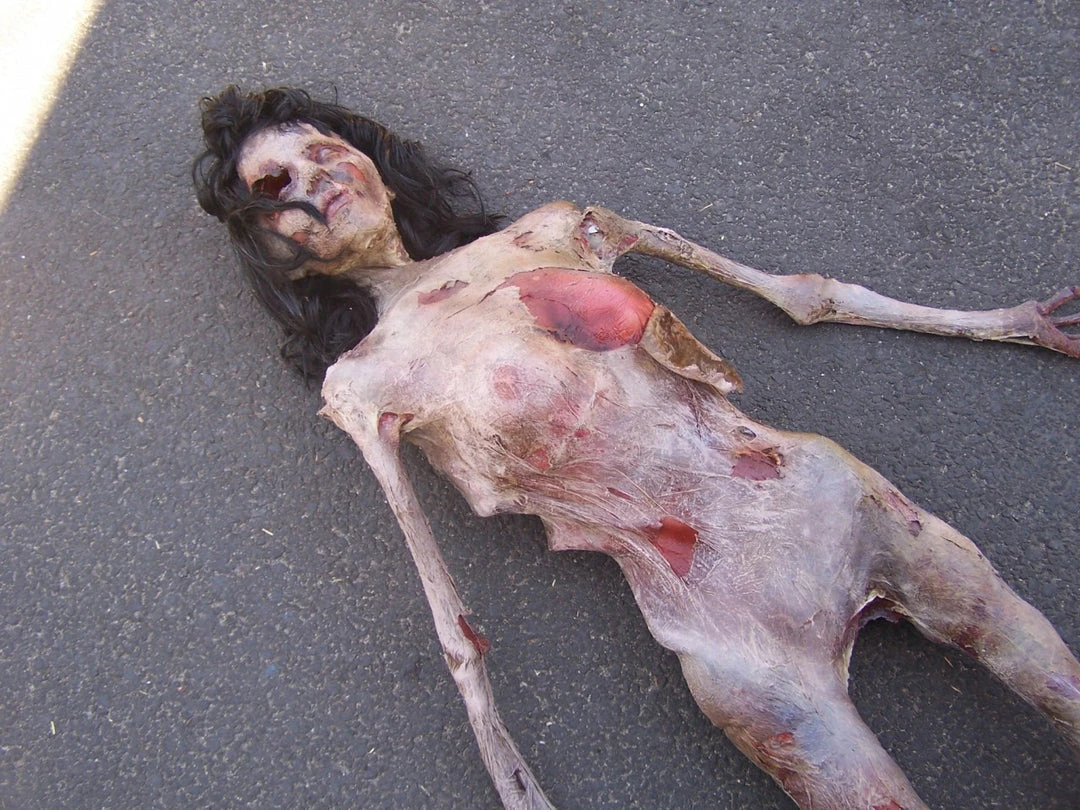 The most popular of the Putrid Sisters, Anna is the perfect mummy for a girl who died young. Her sunken, foggy eyes are a wonderful detail. Made with pvc bone under latex skin. Mummy is made with a layer of pale skin over a layer of meat over a articulated skeleton. Skin peels back to reveal meat and bone.