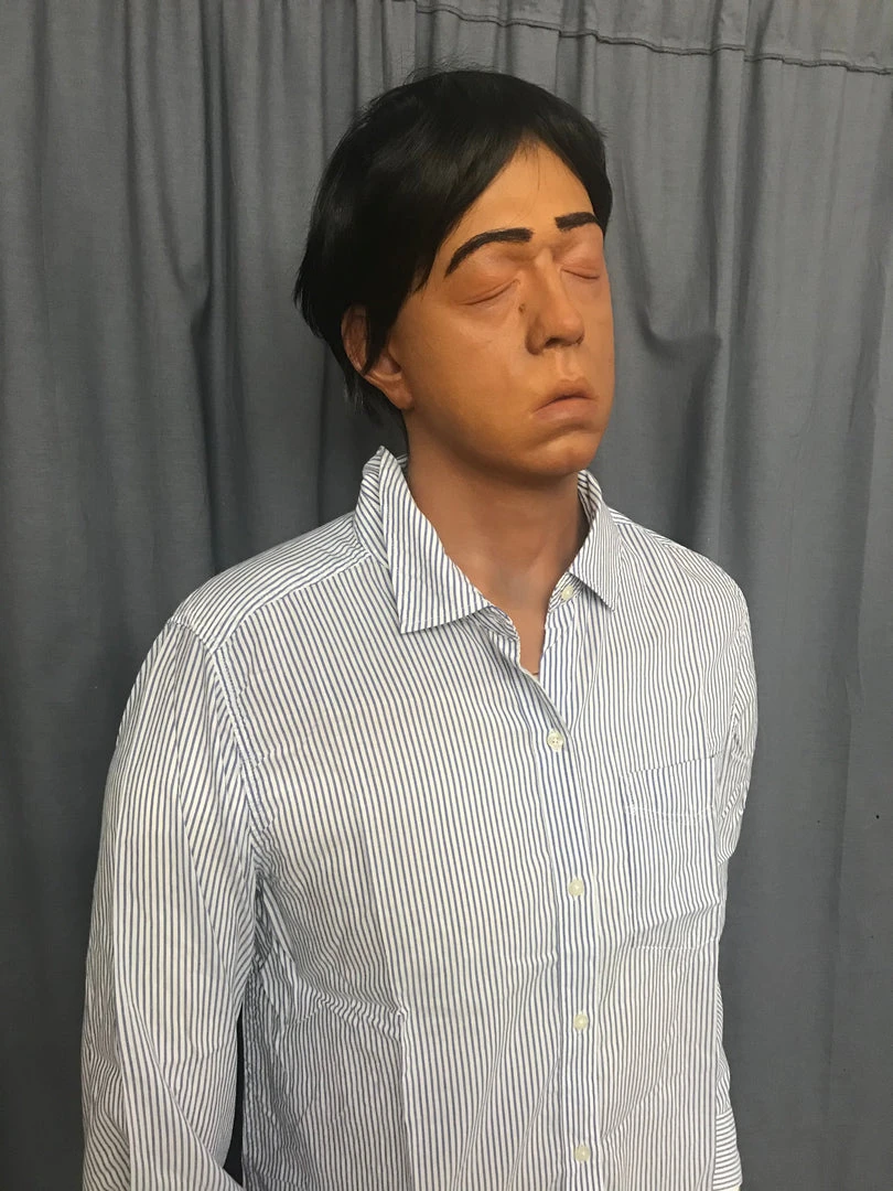 Poseable foam rubber body with lifecast male Raul head and wig. Includes factory standard stand.