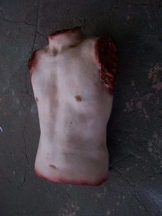 Torso for our anatomical Joe body, with bloody stumps at the neck, shoulders and waist. Product dimensions: 41″ x 12″ x 8″.
