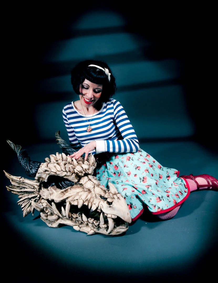 A 25 inch dragon skull cast in quality designer resin and finished to be indistinguishable from fossilized bone. 18″Wx26″Dx18½”H. 22 lbs.