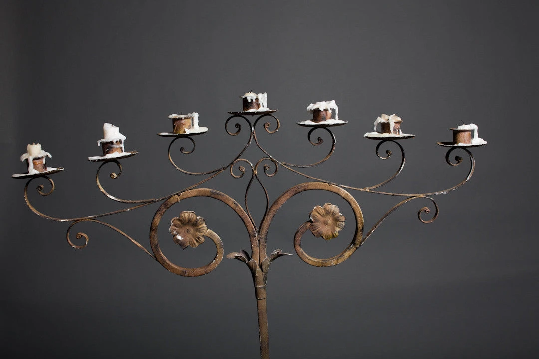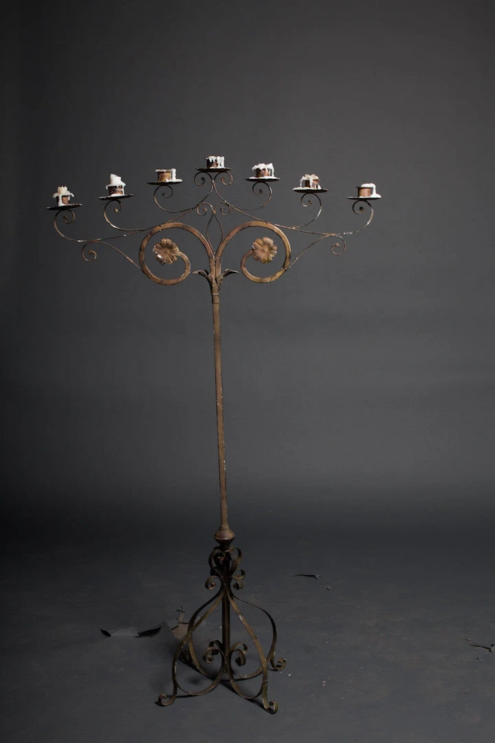 This real iron candelabra makes great mood lighting for the foyer of your own haunted house. Measures 33″x12″x54.5″H.