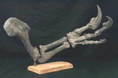 Lifecast skeletal arm of the largest predatory dinosaur of the Jurassic period 149 million years ago. Approximately 34″ long. Comes on removable display stand.
