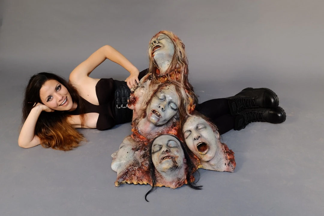 Pile of highly detailed gory cut-off heads stands just short of three feet tall with realistically-sized heads.