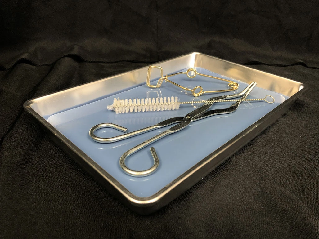 Standard aluminum pan with flexible pad used for dissection. 11.5×7.5×1.5 in. Instruments sold separately.