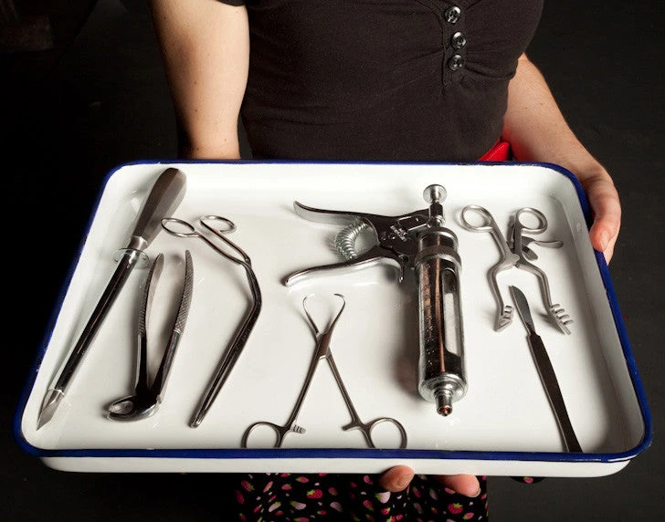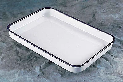 This enamel surgical tray has a pristine white finish that looks great displaying stainless steel instruments. Instruments sold separately. Product dimensions: 16″x12″x1″.