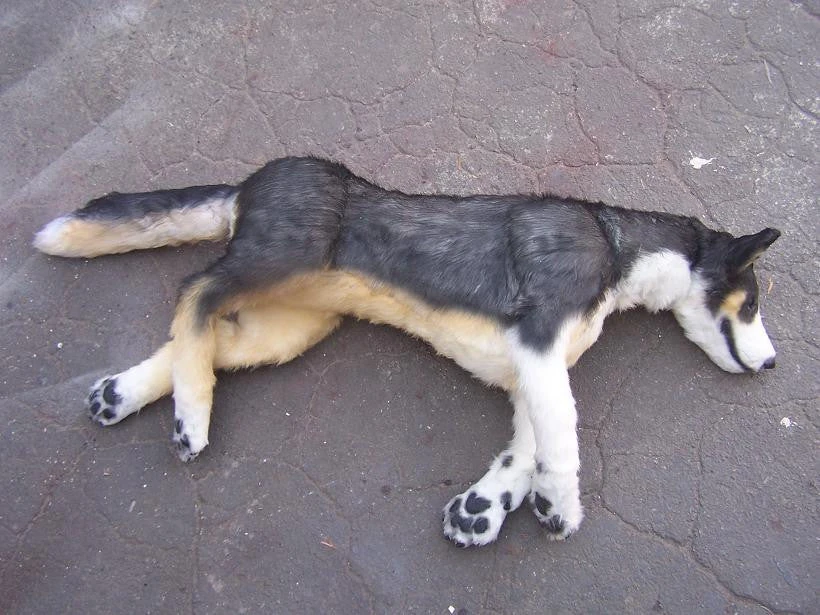 This realistic sheep dog prop has a soft foam body, faux fur and highly detailed face and paws.