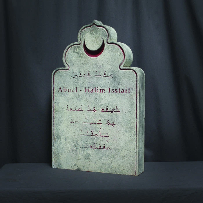 Headstone with script inscription. 32″ tall and 20″ wide.