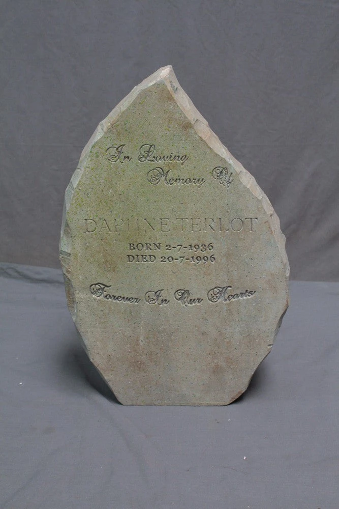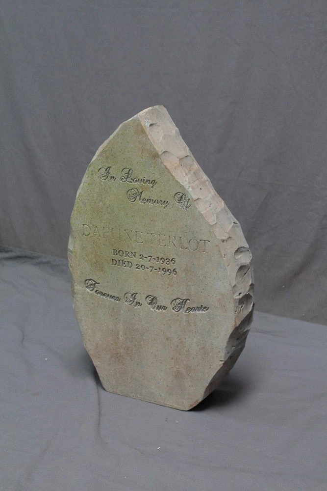 Modern style teardrop shaped headstone. Dimensions: 23x15x4 – 4 lbs.