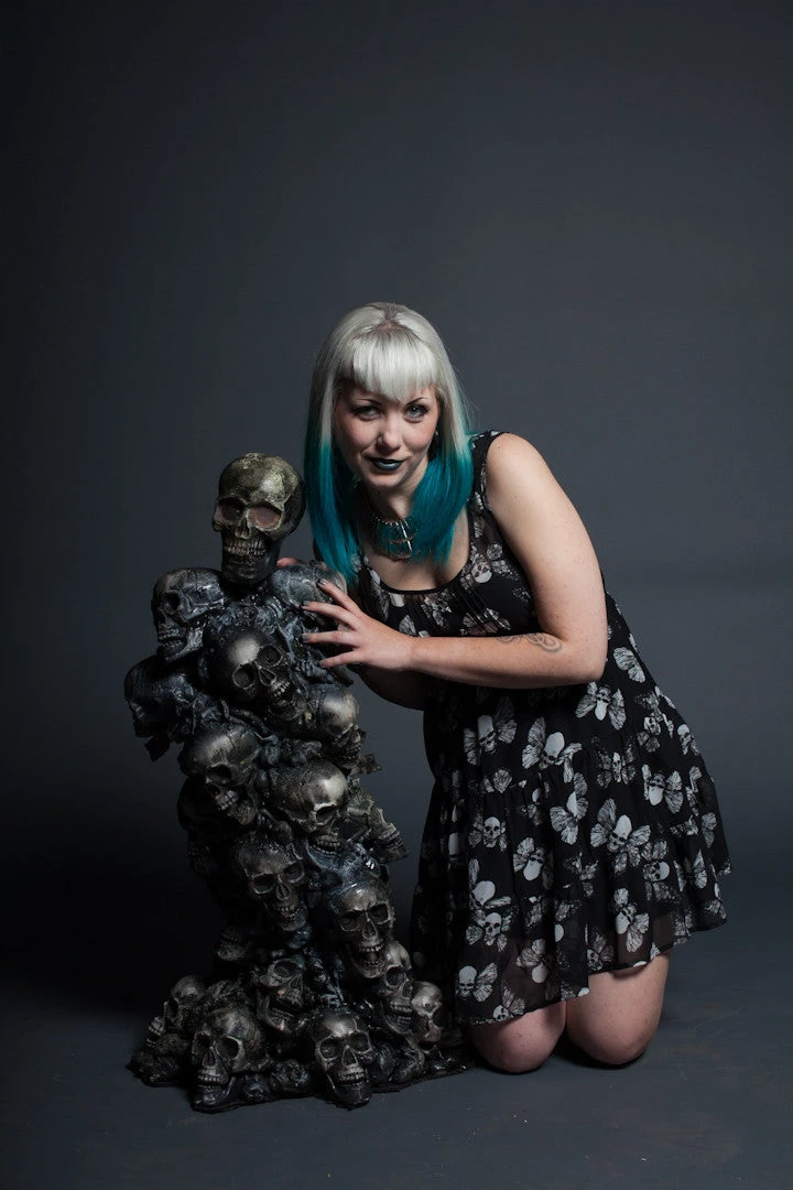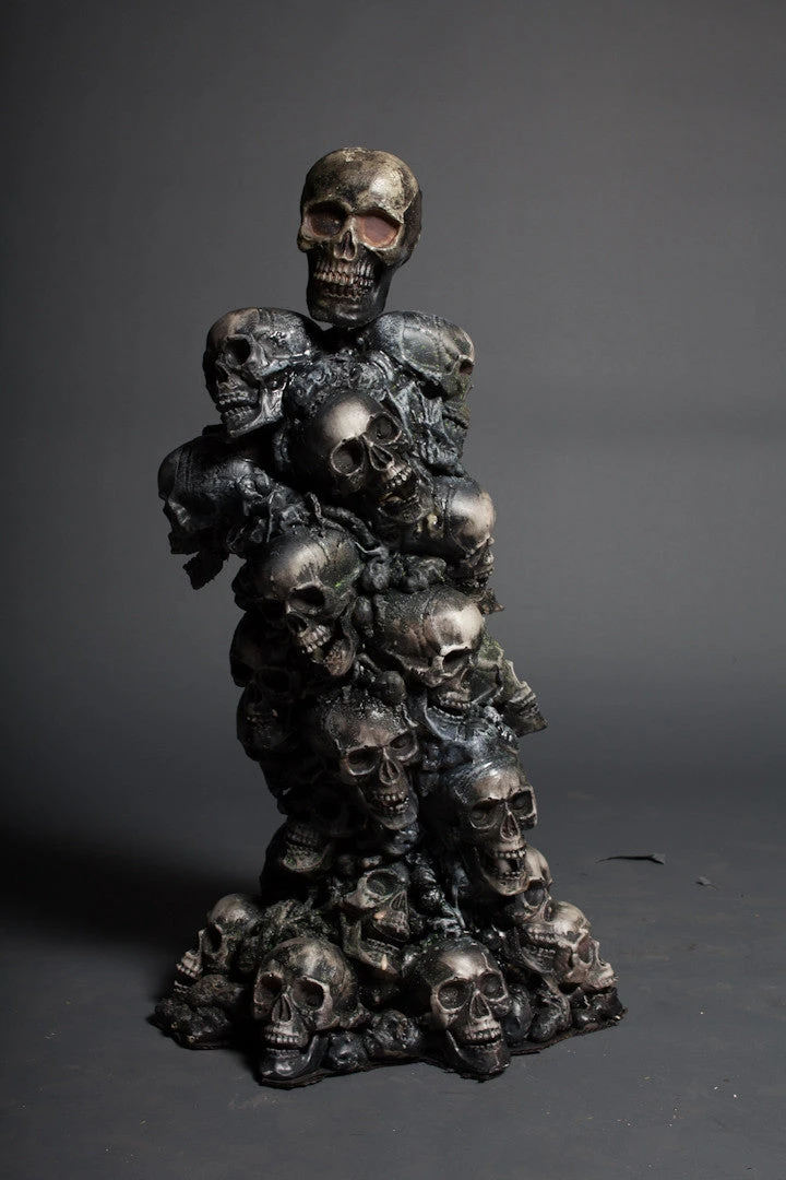 A pile of skulls with a dark gothic coloration appears to be rising and twisting of its own volition towards…you? Your guests? The cat? Halloween events, decorations and a great atmospheric conversation piece.